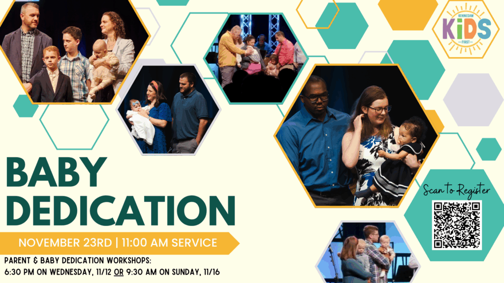 Parent & Baby Dedication workshops will take place beforehand on November 12th at 6:30pm and November 16th at 9:30am. To register, please click Baby Dedication Request.
