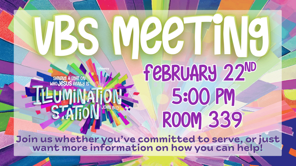 Join us for a VBS meeting on 2/22 at 5pm in Room 339.