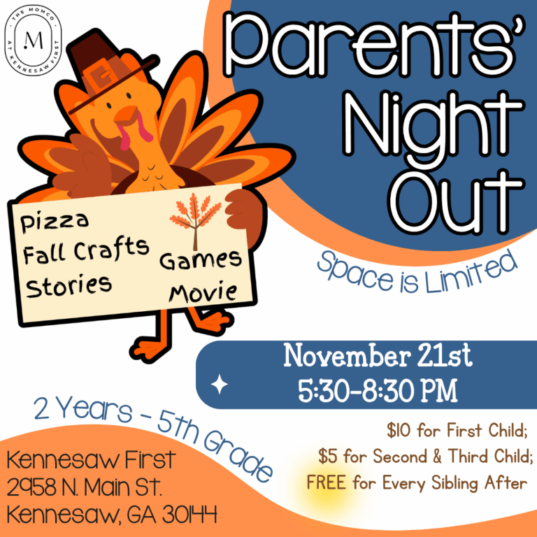 - Safe Pick-Up: To pick up your child after the service, simply show your matching tag to their Kennesaw First Kids Ministry leader.