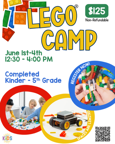 Take it to the next level by making it an all-day experience by registering for Lego Camp. Space is limited, so register soon!